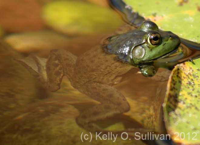 Eyeballs has been observed catching insects on the lilies (not by me – I had the bad luck to look away just as he jumped and caught a fly – everyone ELSE got to watch). I don’t know why he let me get close enough to take this, but I’m happy he did! Notice his tiny fingers holding him in place. So cute!