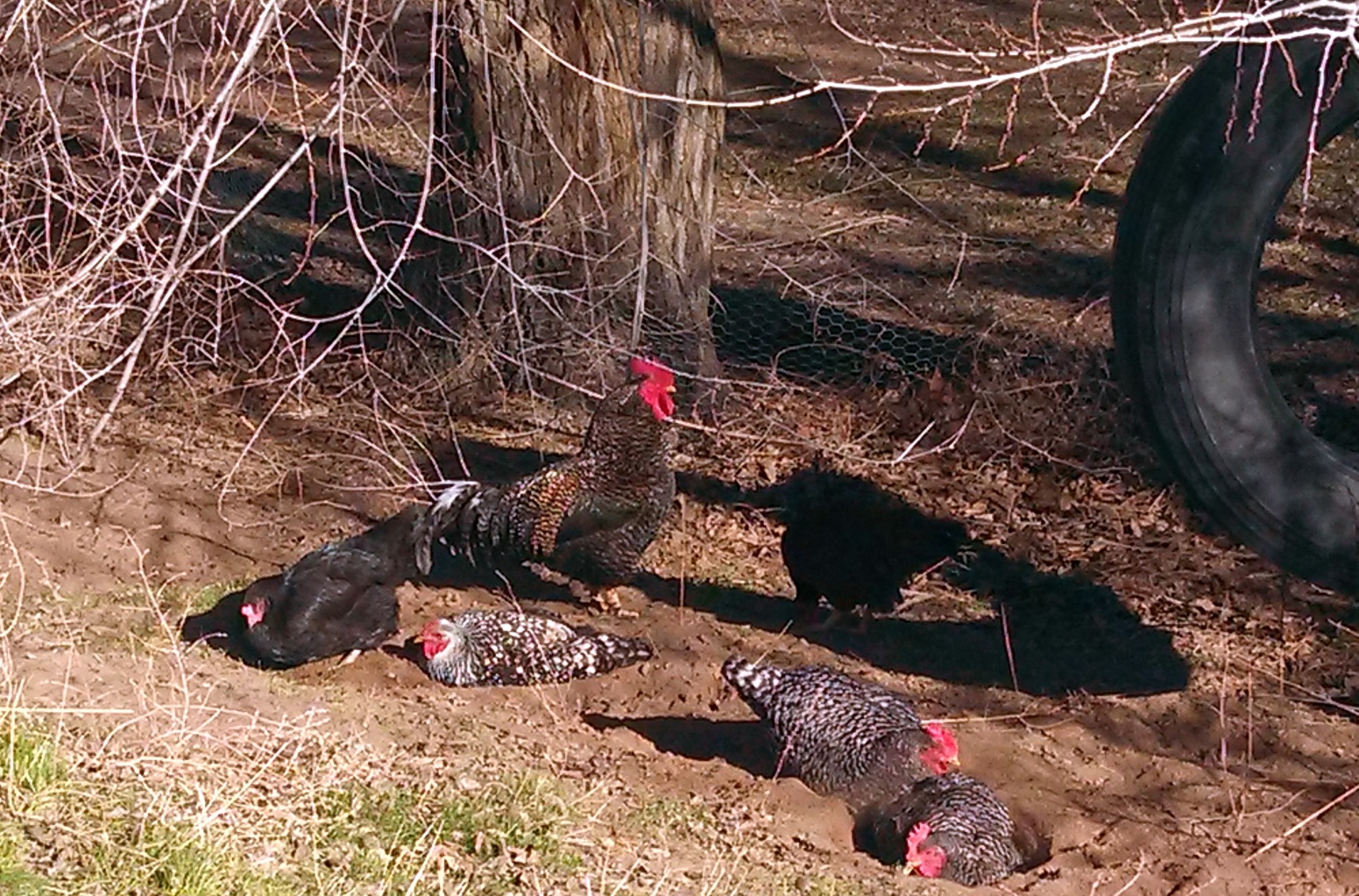 These chickens live across the street from me. Technically across two streets and a canal, I suppose. I get to watch them wander around in the road and into the canal (when it’s dry; they’re not big into swimming) and the rooster is not my best friend in the summer when I have the windows open… But they are very handsome and I really need to start carrying my real camera because the phone picture on barely does them justice.