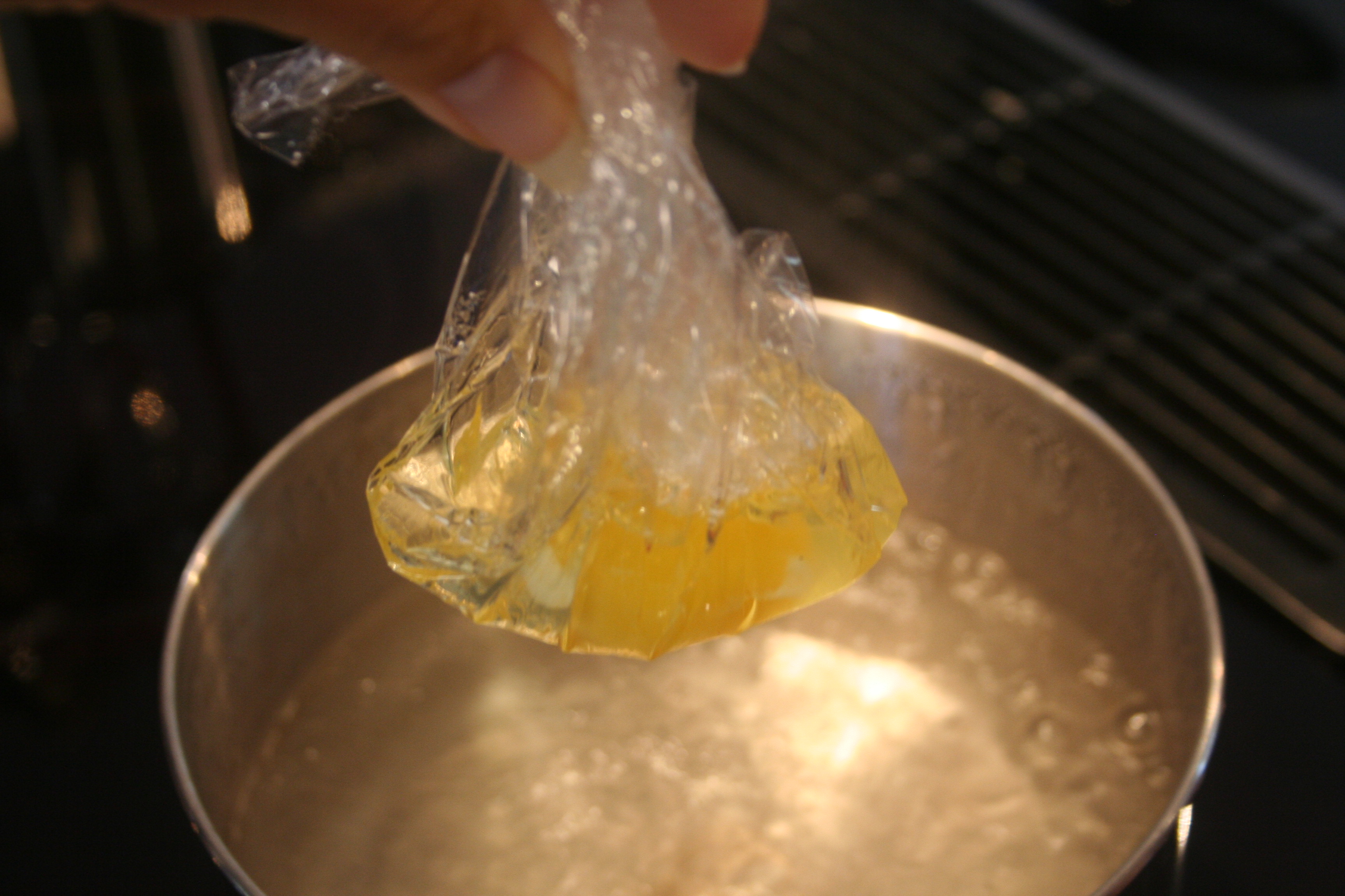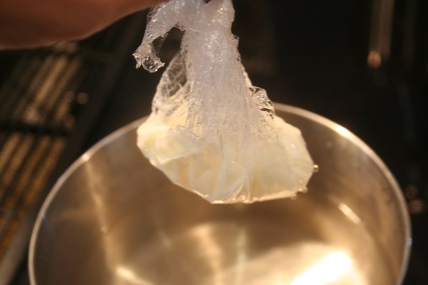 After an hour or so, the meat starts to tighten up and become firm and the color darkens.