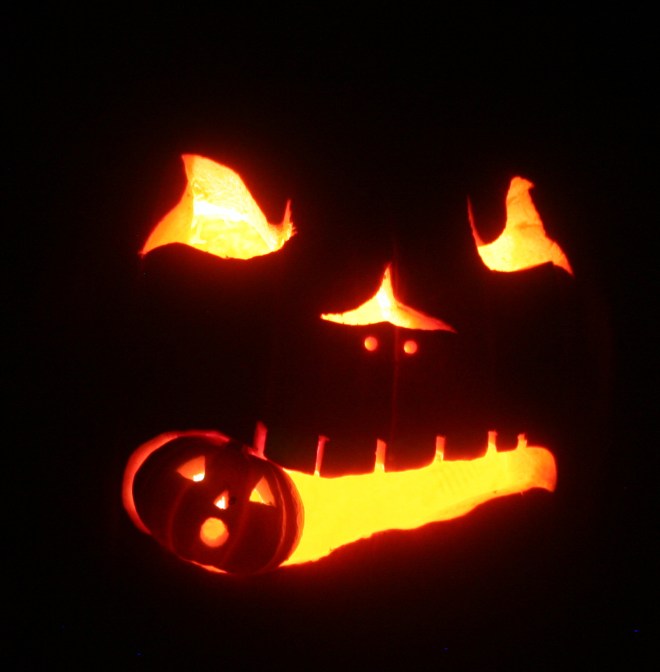 Now I put on the meat – this is about 4 pounds of pork shoulder (aka “boston butt” and don’t ask me why) cut in two pieces.