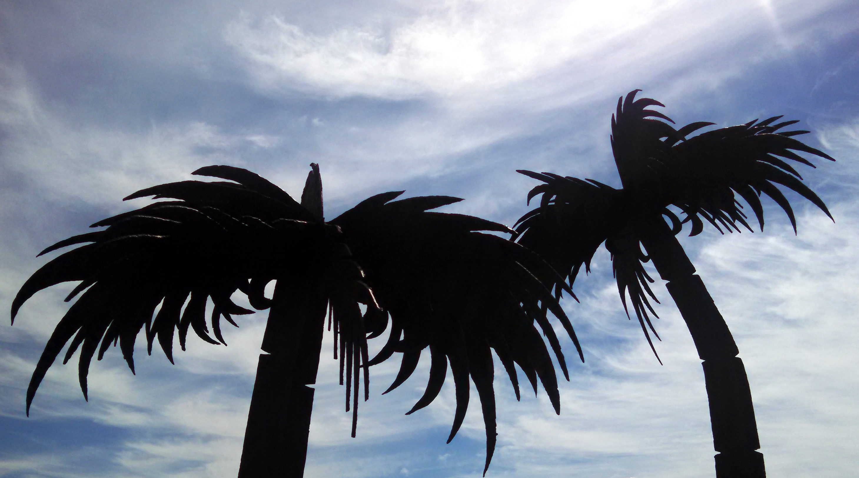 I needed to take my car for service. For most people this means finding someone else to follow them so they have a ride home. However, I realized the service garage is four miles from my house and that is completely walkable! So I drove there, dropped off my car, and headed home. This meant I was walking a route that I don’t usually walk, so I got to see new things. I ran across these metal rusty palm trees – they look super cool and I would have them in my yard.