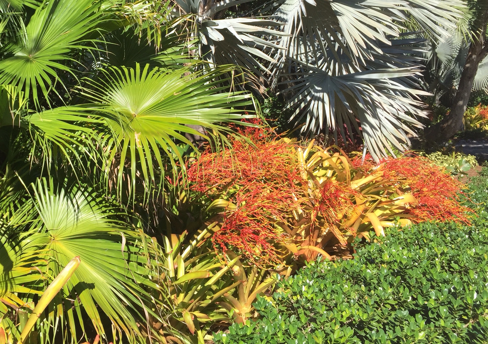 Last month my husband and I went to Sanibel Island, Florida. We were there to meet up with his family and celebrate his mother’s birthday. Aside from one rainy day the weather was lovely and I took a lot of walks. On each one I saw lush vegetation like this.