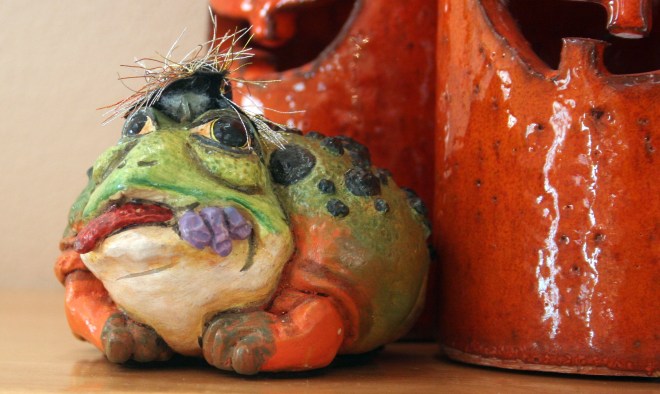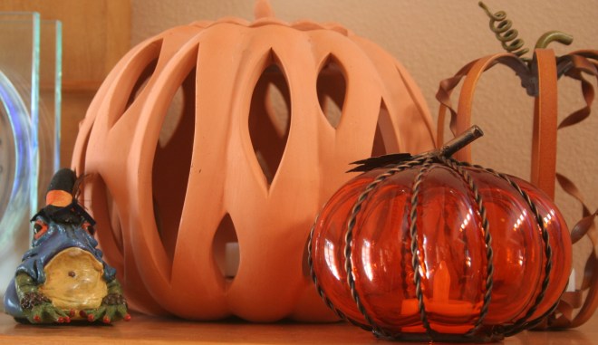 We have 8 jack o’lanterns for the windows across the front of the house, pumpkin candle holders, interesting frog witches… And so I made my moments.