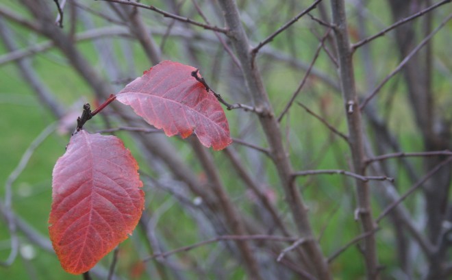 Later I passed this tree – with two stubborn leaves still clinging to the branch – most of the rest of this tree is bare now: