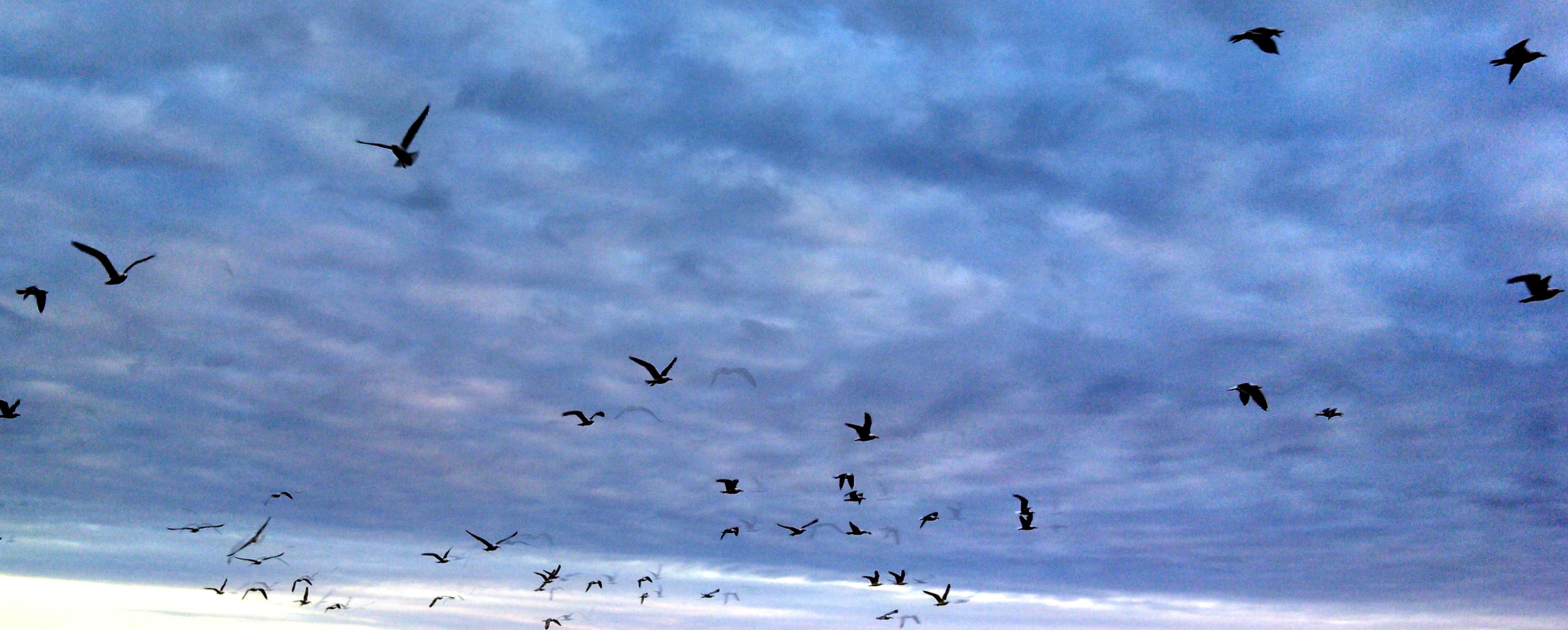 I often see seagulls on the Columbia River – which is always a little odd because I’m rather far inland (many hours!). One morning there was a huge flock in the middle of campus – a rare sight for me! Like a kid, I had to startle them into flying and then I captured this with my phone camera. I guess the phone camera is why there are shadow birds in the image, but I think it looks cool.
