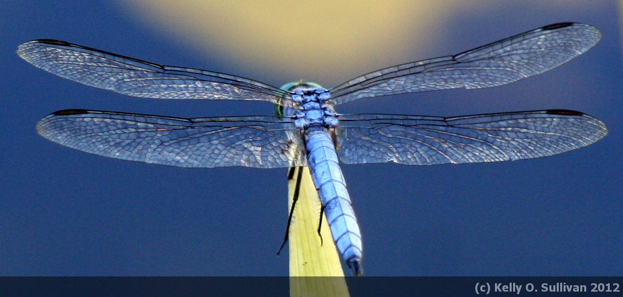 In addition to frogs, we have fish and plants in our pond. The plants (and the water) attract lots of dragonflies, which is lovely since they eat other bugs that we don’t care for. They also sometimes pose on the ends of plants for us. While I was out taking photos of frogs, this lovely blue dragonfly decided to sit on the tip of a water iris leaf long enough for me to capture this photo. Enjoy!