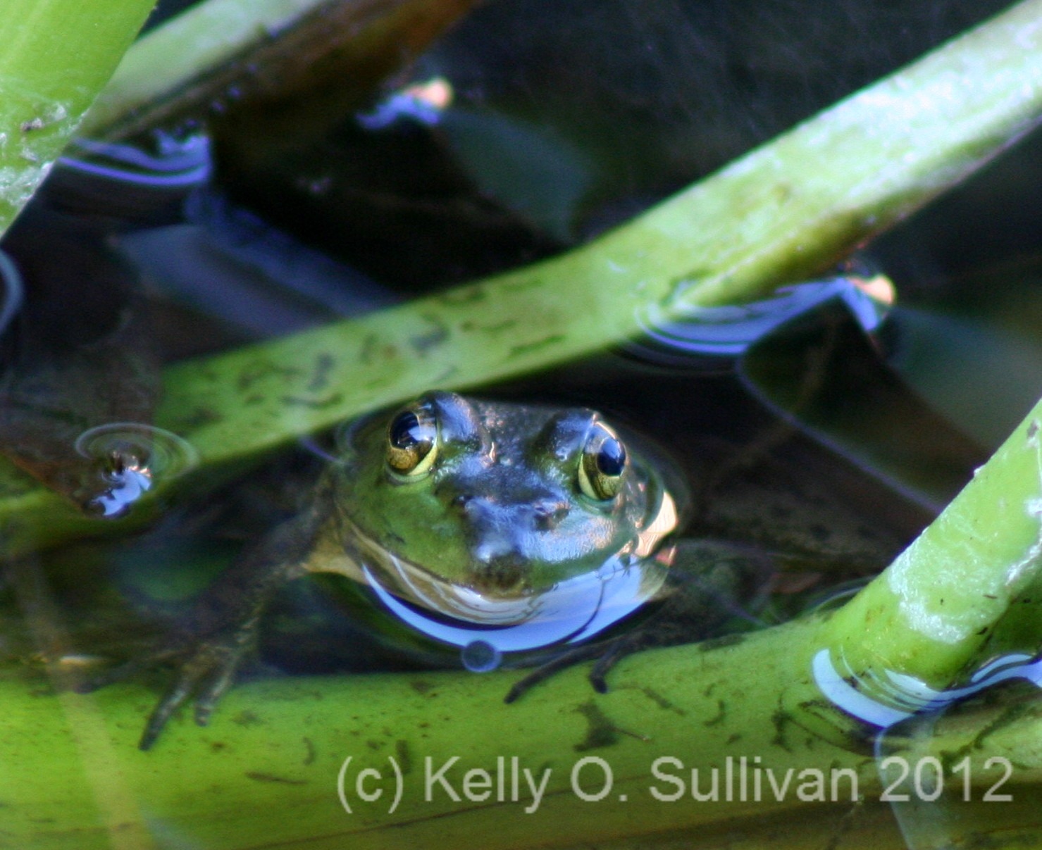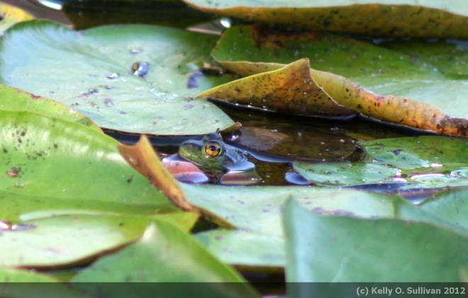 Not the quality I’ve become used to, but I wanted to share how Cave Frog got his name. I had two chances before he went in too deep to see, and this was the better of the two. Because it’s not what I really hoped for, I’m including a bonus frog (a repeat for my twitter followers) – a shot of Eyeballs in the lilypads that I just LOVE.