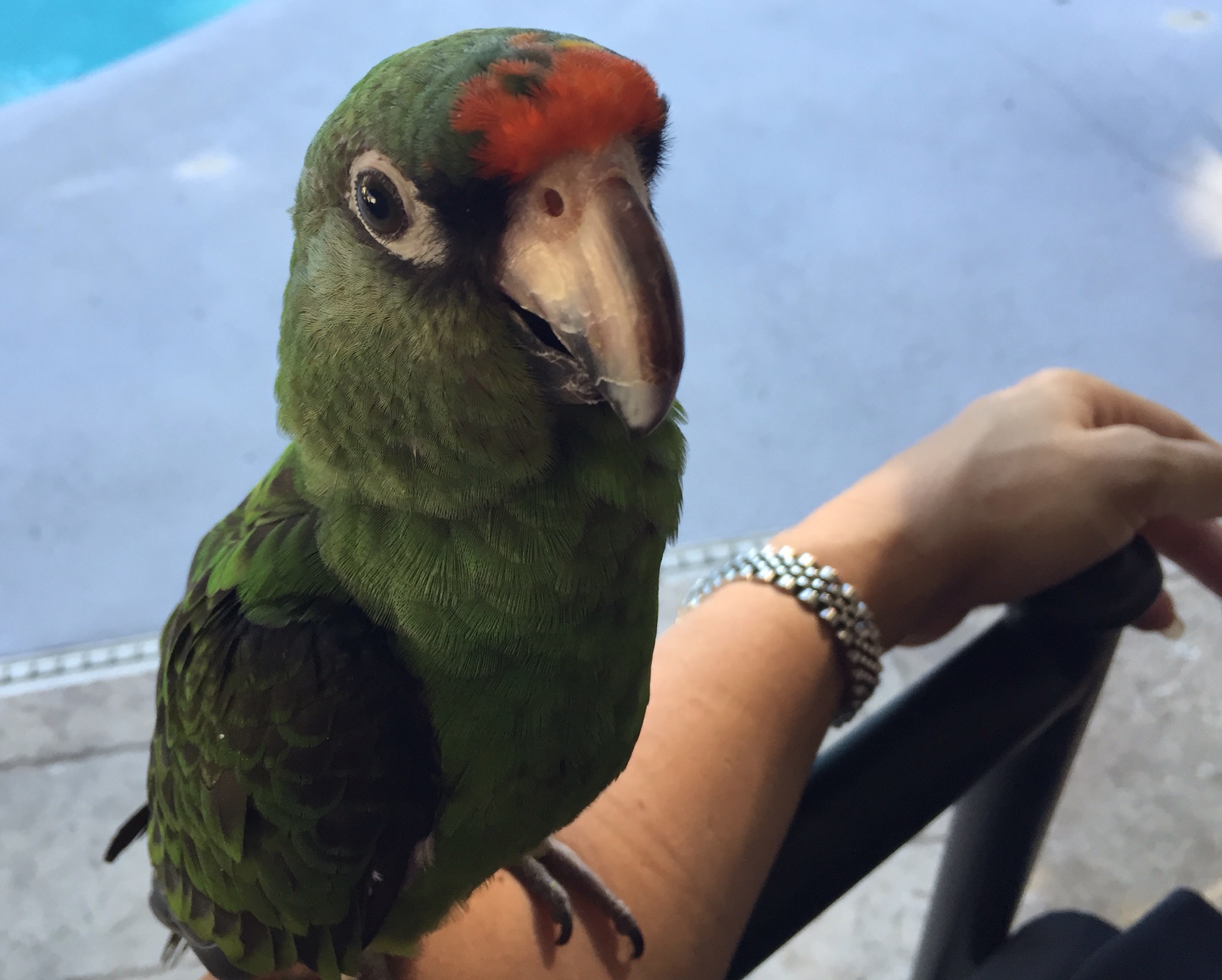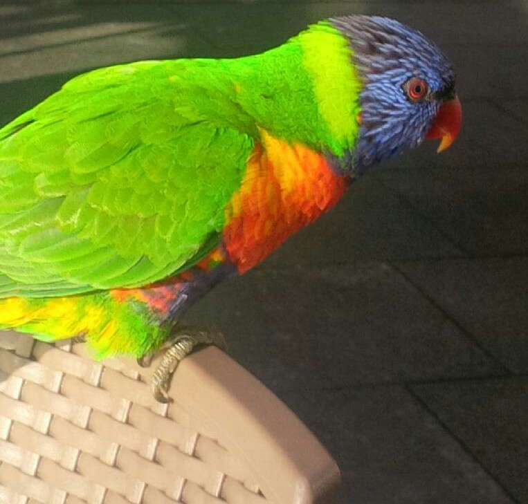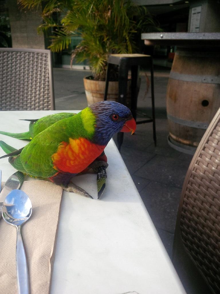 My husband was in Australia for business recently. He sent me a photo-text from breakfast and asked if this parrot was cuter than our cat (her name is Stray Cat):