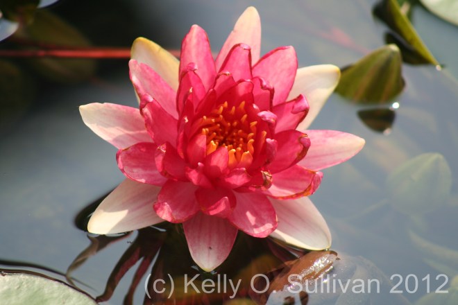 I am 99% certain my mother took this photo last summer. I know it wasn’t this summer because we didn’t put in water hyacinth this year. They are a lovely flower – but they bloom for about a day and that is it. Plus, they are annuals where I live. But I admit, the dragonflies did enjoy posing on top of them! Of course, this one isn’t in bloom. Below is a photo of one fully bloomed – which you have to have good timing to get since they only last a day. Apologies for the blur; I believe this was with my phone and the lens was probably not so clean. Or, you can assume I used a nice filter for this effect.