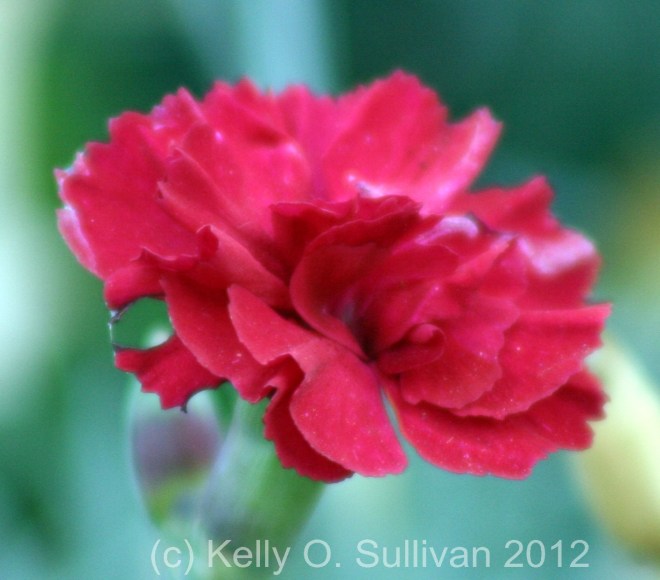 We have a couple of varieties of dianthus (in the same family as the carnation) in the yard – this is the lipstick red version. Gorgeous color against the pale sea-green foliage.