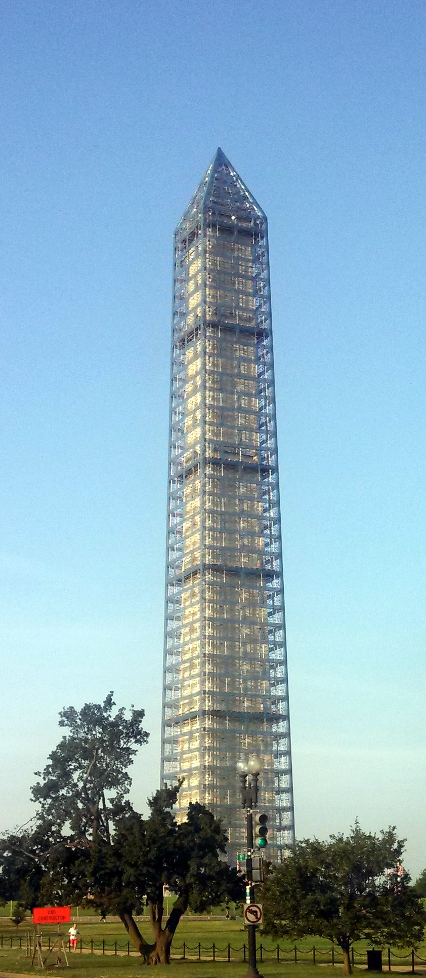 I was in Washington DC briefly and had an opportunity to walk by the National Mall on my way to my meetings. The scaffolding around the Washington Monument is slowly coming down and it’s starting to look a lot more familiar. See here for a view when it was fully encased.